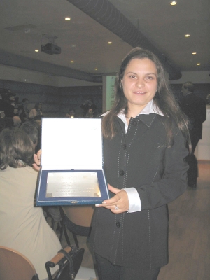 Maria Cudrova, administrative director of SIZIF PLC, with the award for best Bulgarian company. Each partners had to nominate a company, taking into account its activities and cooperation during business partnership events, as well as the number of signed contracts.