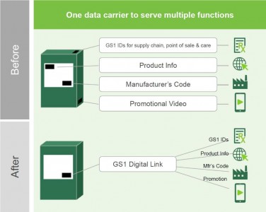 Чрез инициативата за миграция към 2D, която е важна част в бизнес плана на организацията, амбицията е за един баркод, в който да е кодирана цялата необходима информация. Много важна компонента при миграцията е Digital Link, което е стандарт за включване на GTIN в URL адрес, който позволява връзка към различни видове информация B2B и B2C.