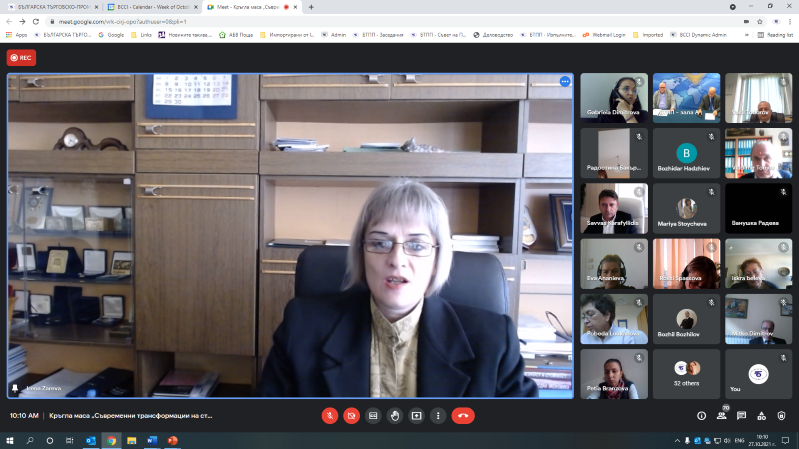 Българската търговско-промишлена палата бе домакин на широка Кръгла маса по въпросите на съвременните трансформации на стопанската дейност. Съорганизатор на събитието бе Институтът за икономически изследвания към БАН и в нега взеха участие над 70 ръководни представители на наши министерства и организации, на българската бизнес и академична общност.