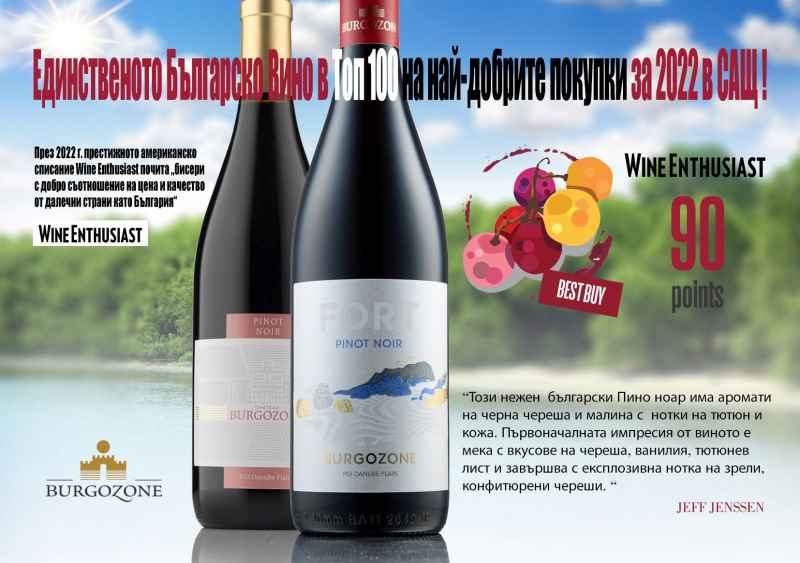 В резултат на "канопи мениджмънт" и зелена резитба, които рефлектират в интензивни ръчни операции в лозето, добивите са лимитирани и гроздето е от най-високо качество. Винарната е отличена с над 100 медала от най-престижните световни винени конкурси. Бургозоне е единствената българска изба, попаднала тази година в престижната американска класация на Wine Enthusiast Top100 Best Buys in USА за 2022 г. с Пино Ноар.