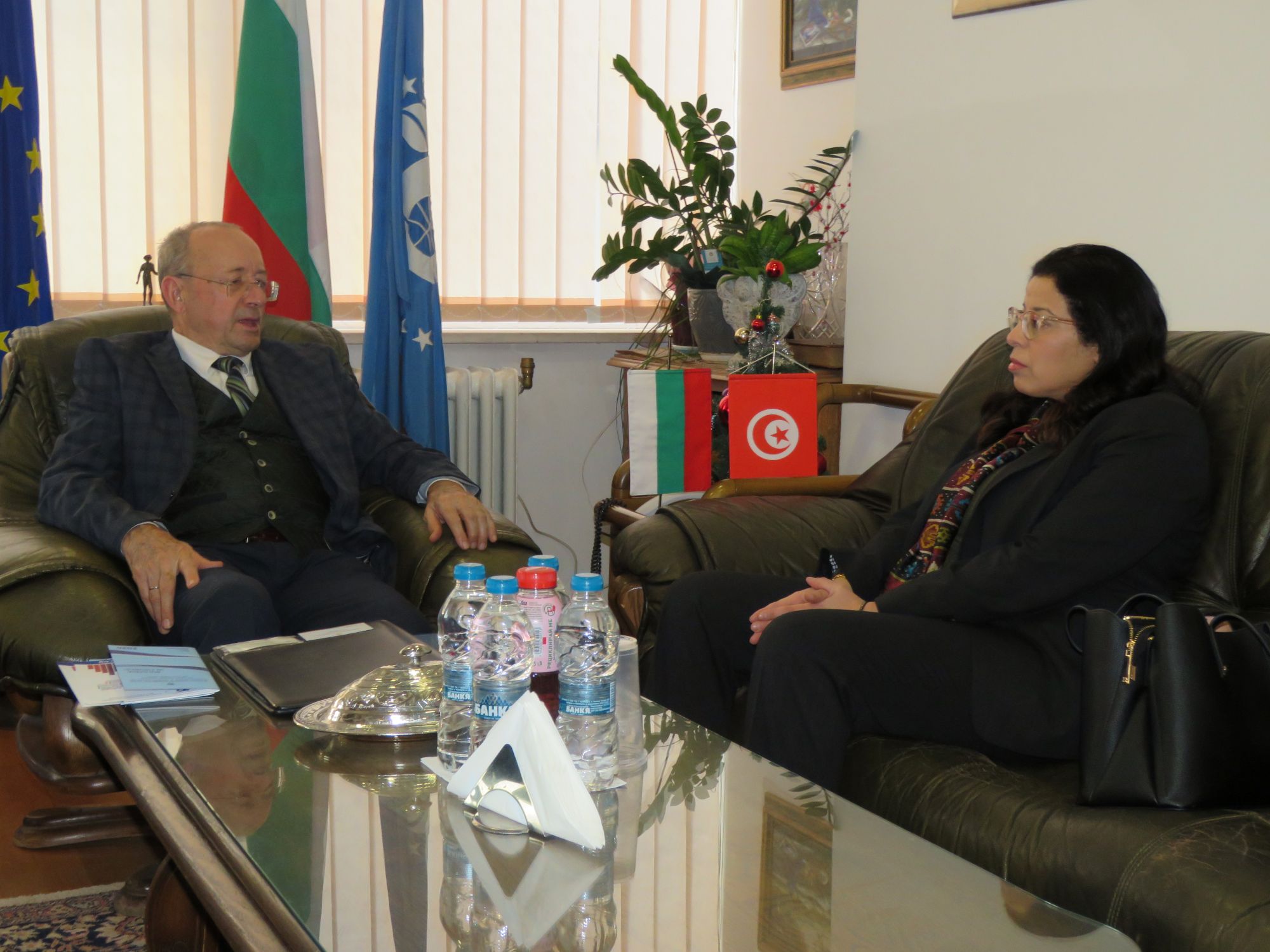 The Meeting discussed the organisation of an Economic Day in Bulgaria to present the reforms in the Tunisian economy and the incentives for attracting foreign investments. Ambassador Ammari said that the country is a major producer of bio olive oil in Africa and is also famous for its spa tourism, wine production and craft goods. The cooperation in the field of education and exchange of students was discussed as well.