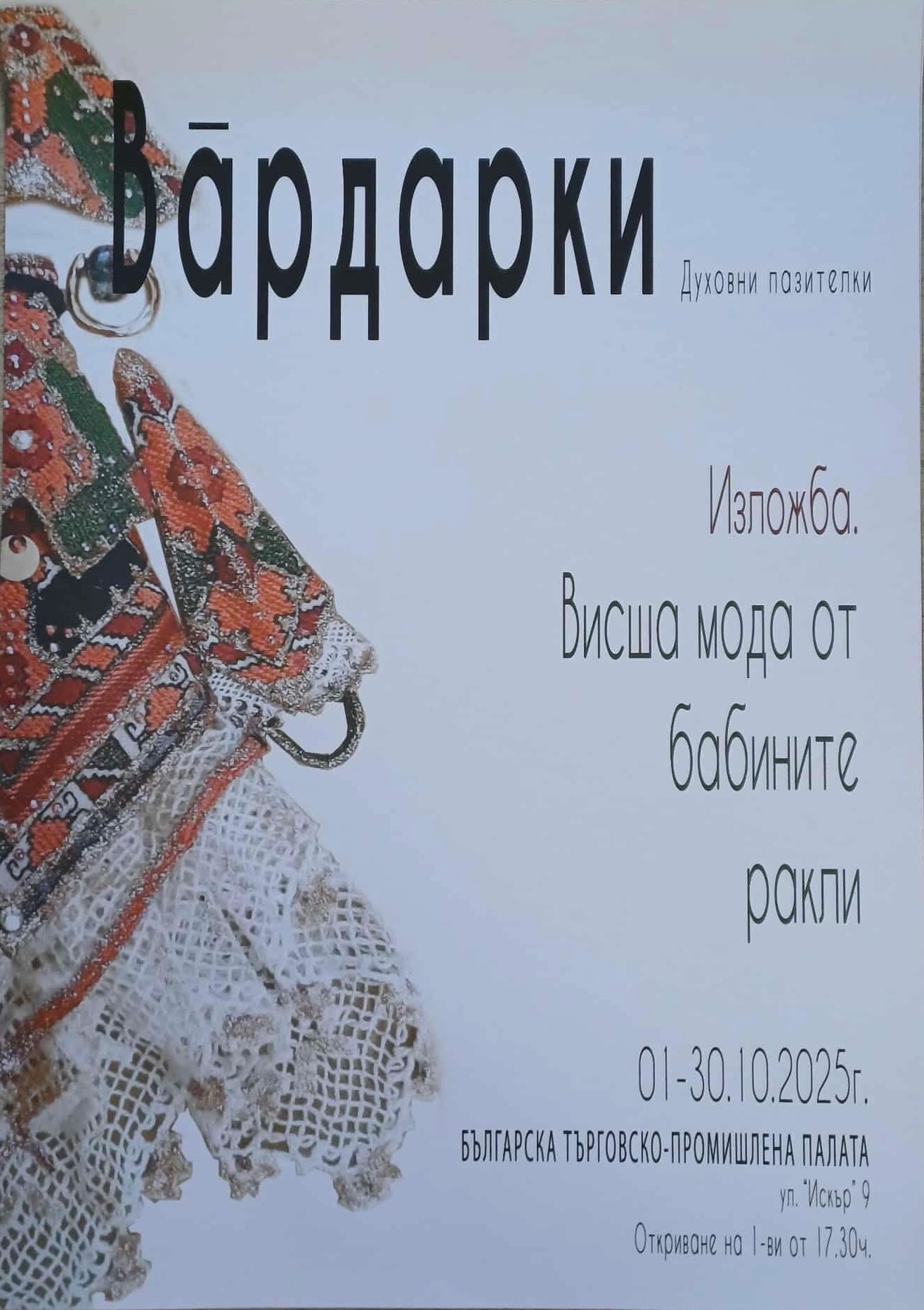 Руми Белева - филолог по образование, естет по душа и творец по призвание, ще представи “Висша мода от бабините ракли” във фоайето на БТПП от 1 до 30 октомври 2025г.