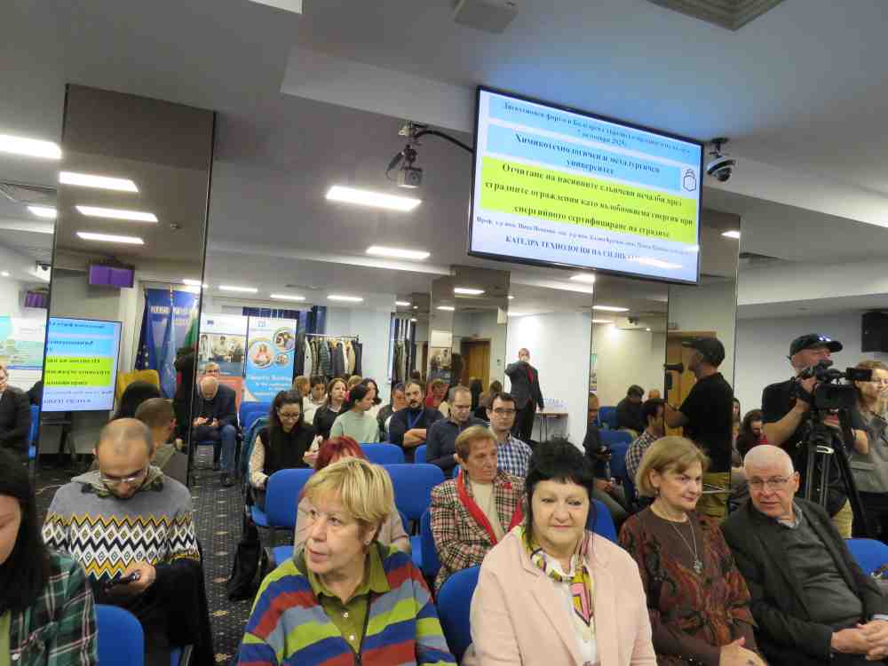 Ректорът на ХТМУ проф. Сеня Терзиева също приветства аудиторията от над 50 участника от бизнеса, публични институции и обществени организации, като представи основните ползи до момента от изпълнението на Договор №: BG-RRP-2.004-0002-C03 по проект „BiOrgaMCT“ (Биоактивни органични и неорганични авангардни материали и чисти технологии) по процедура: BG-RRP-2.004 – Създаване на мрежа от изследователски висши училища в България по Национален план за възстановяване и устойчивост.