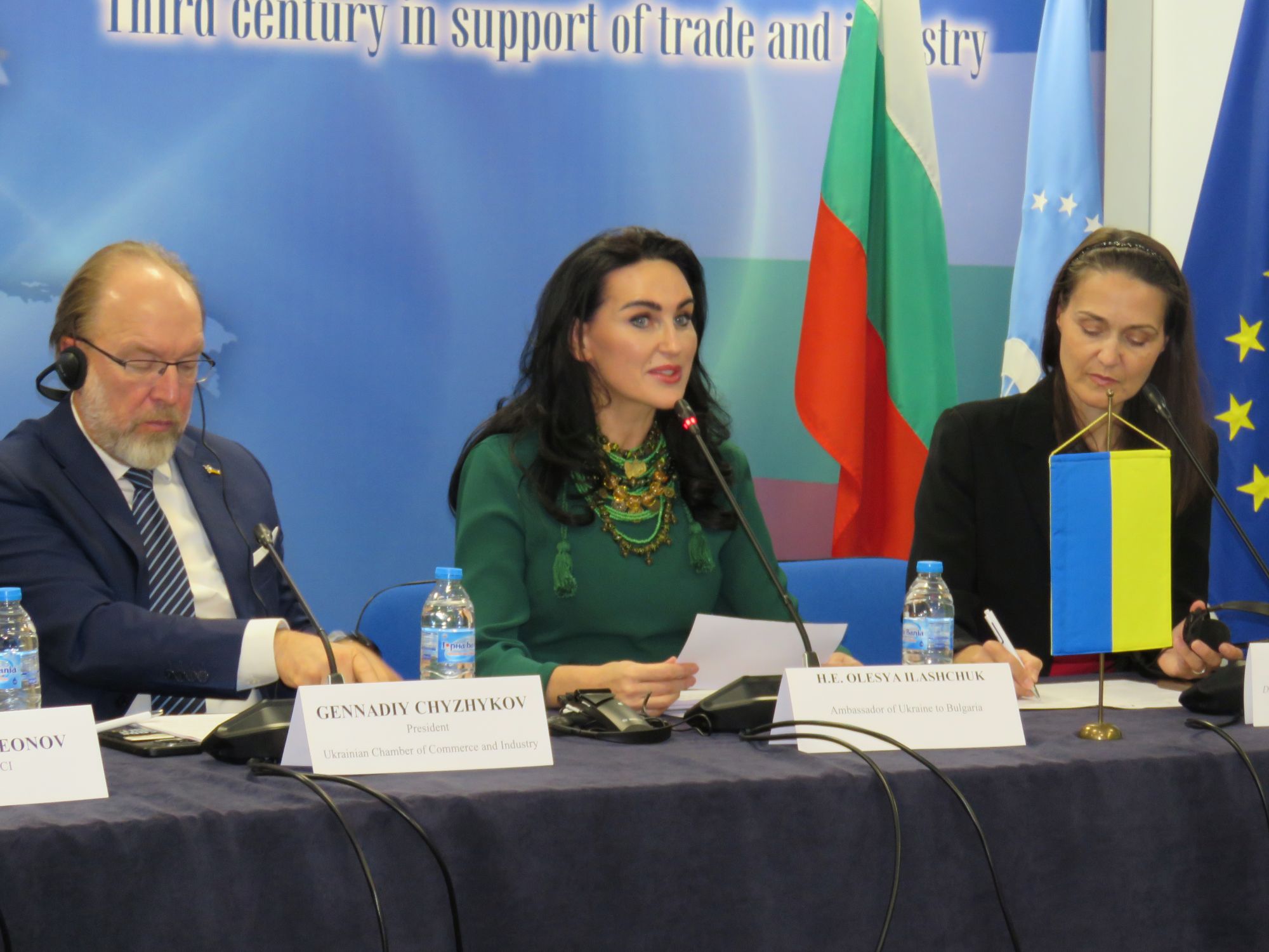 Посланикът на Украйна Олеся Илашчук посочи, че България е най-големият търговски партньор на Украйна на Балканите и много важен пазар. Тя оцени високо подкрепата на България за Украйна, която е всъщност една инвестиция за бъдещето. Опитът на България в процеса на присъединяването към ЕС също е много важен за Украйна.