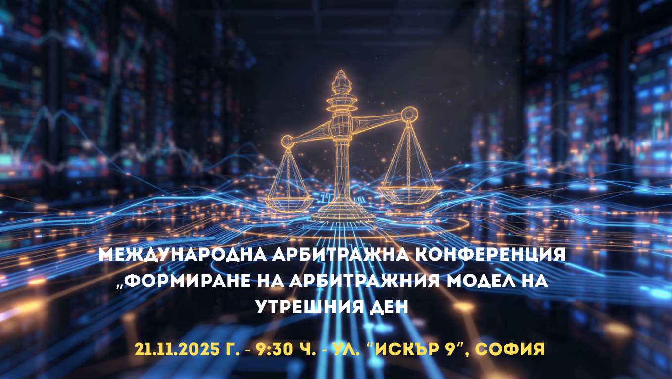 Арбитражният съд при БТПП организира международна конференция на тема: „Формиране на арбитражния модел на утрешния ден“, която ще се проведе на 21.11.2025 г. в Зала А, ет. 1 на Българска търговско промишлена палата, ул. Искър №9, гр. София.