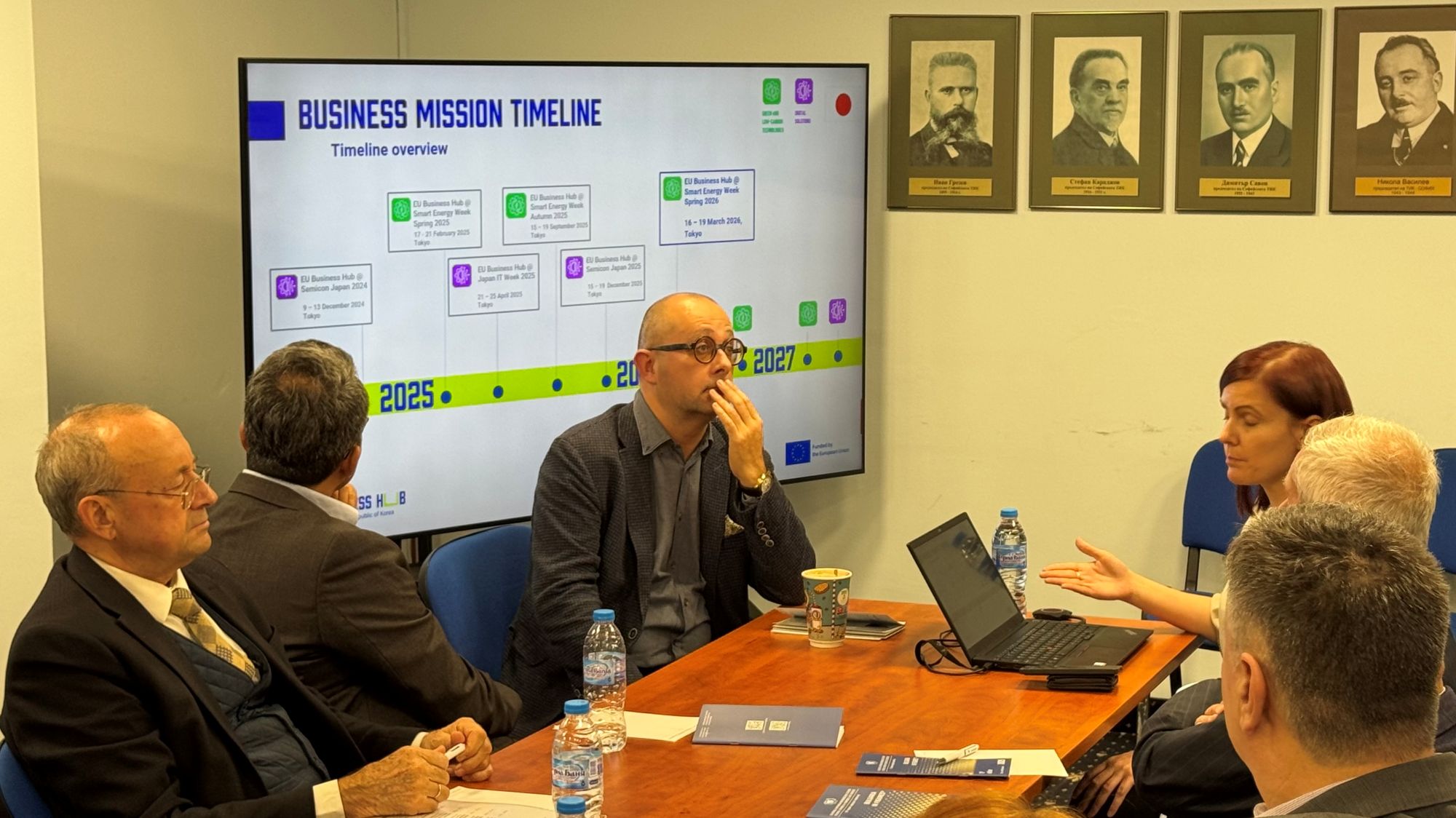 Мирослава Маркова, главен експерт „Международно сътрудничество и международни организации“ при БТПП, представи програмата Бизнес хъб ЕС – Япония и Република Корея, която цели да финансира малки и средни предприятия за навлизане на тези пазари и по-специално в три ключови направления - зеления сектор и екологията, дигиталните решения и здравния сектор (здравеопазване и медицинско оборудване). Маркова представи детайлно целите на програмата и начина на кандидатстване, както и предстоящите бизнес мисии, сред които: EU Business Hub @ Smart Energy Week Spring 2026 и EU Business Hub @ ENVEX Business Mission, за компании, работещи в зеления сектор.