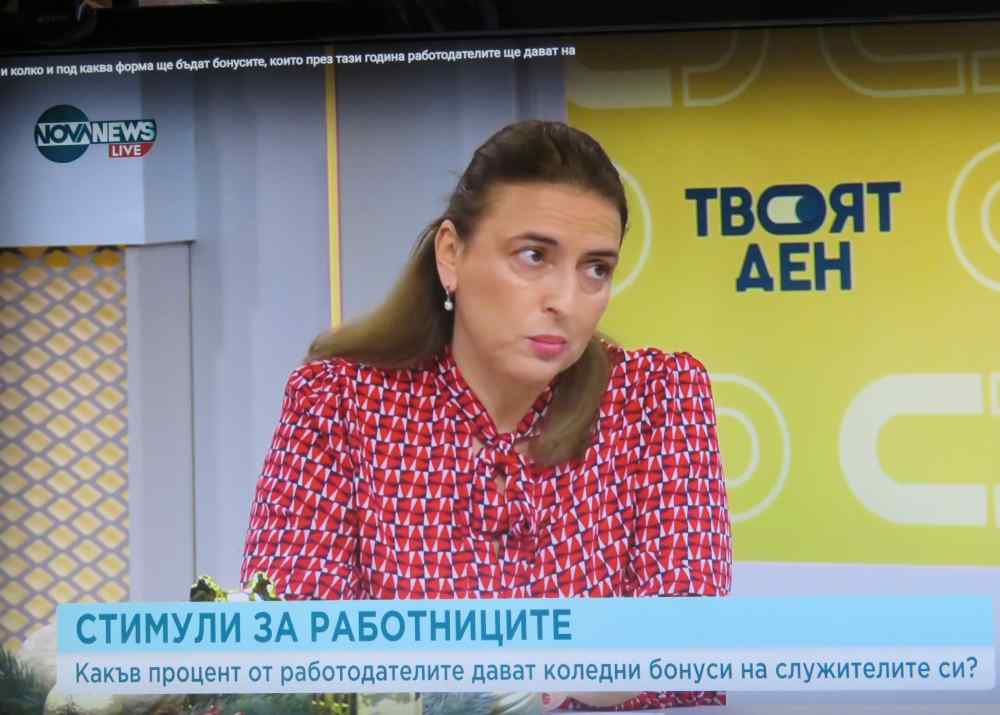 Според последното проучване на Българската търговско-промишлена палата около 67% от компаниите планират да раздадат коледни бонуси на своите служители, което е по-нисък процент спрямо миналата година. Тогава около 74% от фирмите зарадваха работещите. Темата коментираха експертът човешки ресурси Елица Панева и ръководителят на „Икономически анализи и политики” към Българската търговско-промишлена палата Боряна Абаджиева в ефира на предаването „Твоят ден” по NOVA NEWS.