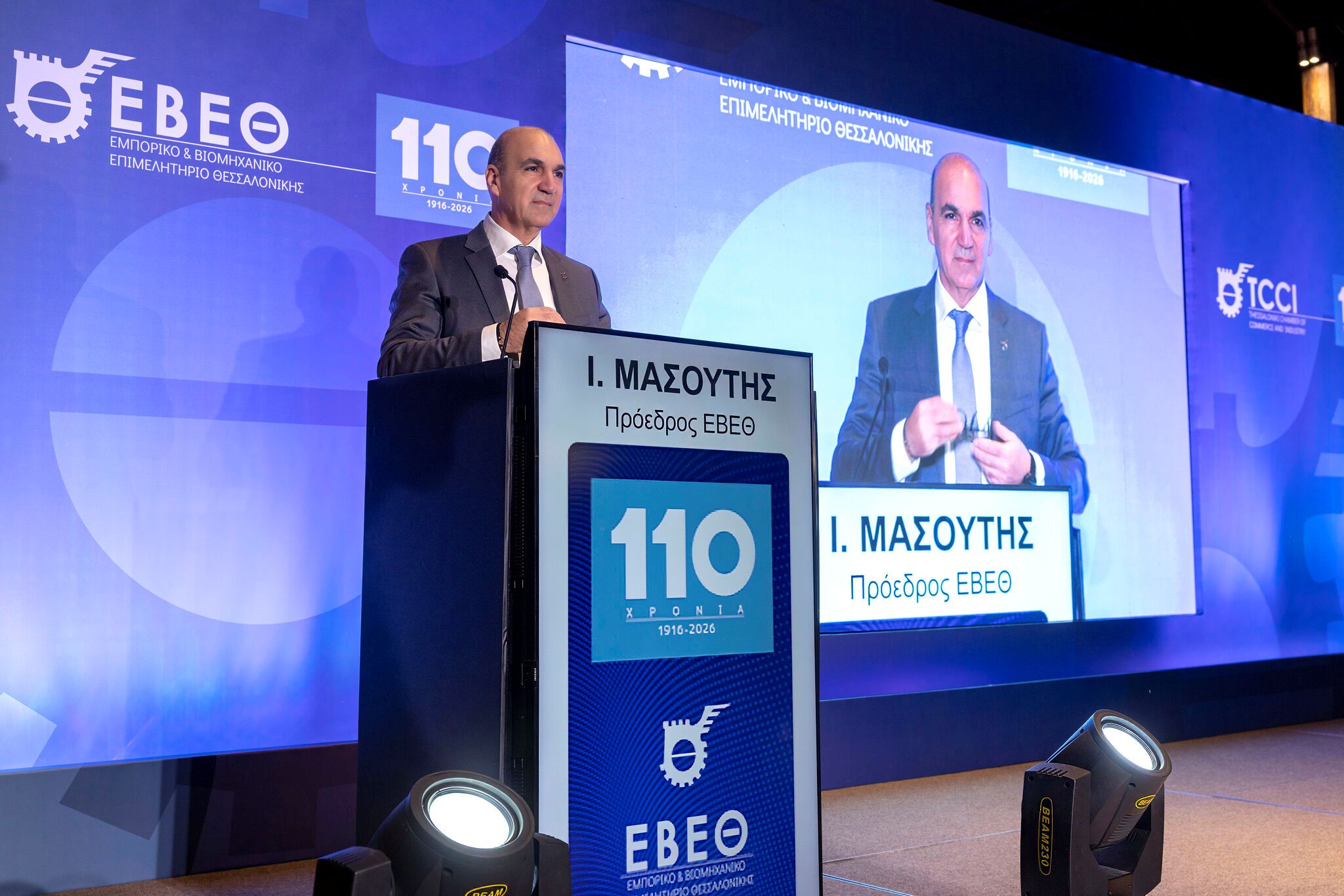Председателят на Солунската палата Йоанис Масутис акцентира върху ключовата роля, която организацията изпълнява от създаването си до днес. Търговско-промишлената палата на гр. Солун е първият подобен орган, учреден в Северна Гърция и един от първите в страната — още от османските времена (1913 г.), преди дори да бъде издаден учредителният ѝ указ.