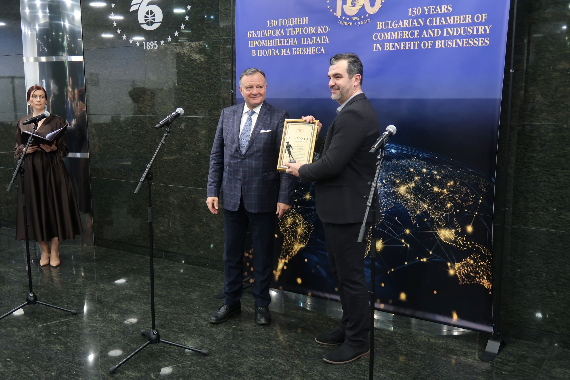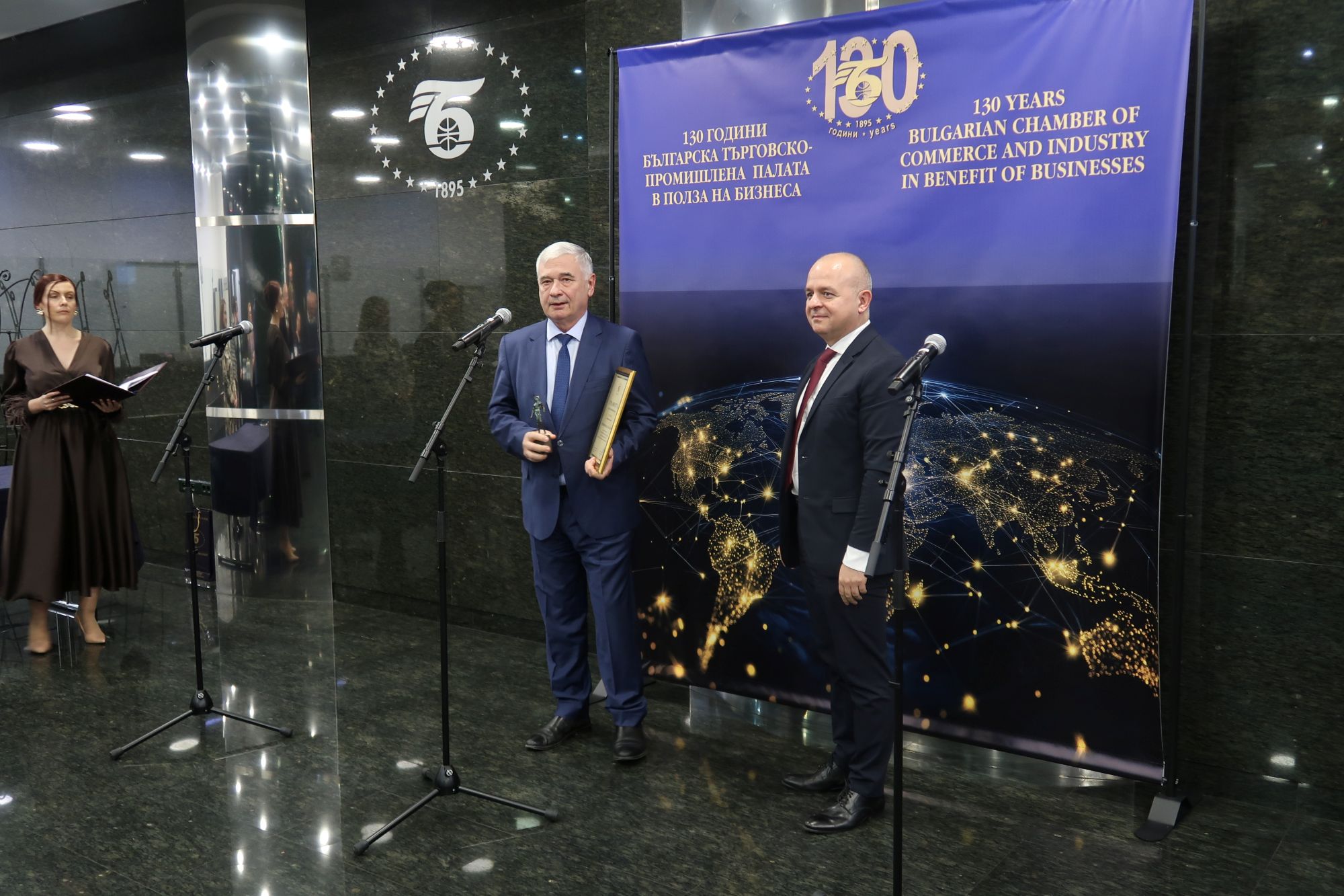 The Stara Zagora Chamber of Commerce and Industry received an award in the category Regional Chambers of Commerce and Industry within the BCCI system, for contribution to achieving the goals and objectives of the BCCI.