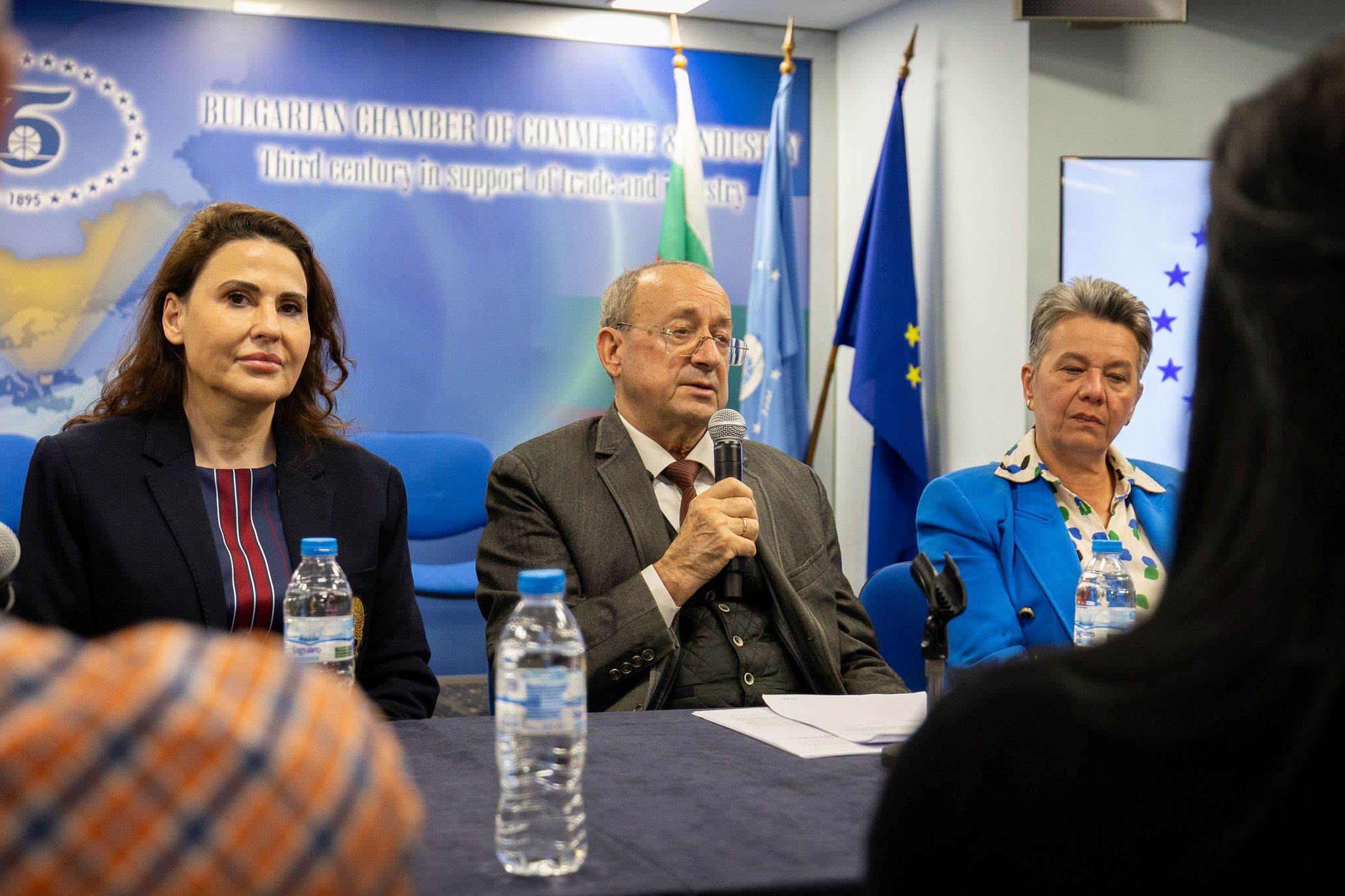 В кръглата маса участваха и Анна Делибашева – зам.-гл. директор на Главна дирекция „Услуги по заетостта“ в Агенция по заетостта, инж. Велина Томова - старши експерт по професионално образование и обучение – РУО София-град, София Дамянова – ръководител на Проект „Дуално обучение“; представители на бизнеса и образователни институции.