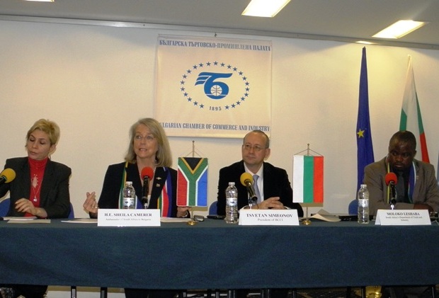 Предедателят на БТПП, г-н Цветан Симеонов и Н.Пр.г-жа Шийла Камерер, посланик на Република Южна Африка в България представиха бизнес отношенията между двете страни. Г-н Молоко Лешаба от Департамента на Южна Африка за търговия и индустрия направи представяне на основните икономически и бизнес условия в африканската страна и отговори на въпроси на представители на българския бизнес.
