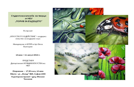 На 14 юли от 17:30 часа в БТПП ще бъде открита сборна изложба на студенти от департамент „Изящни изкуства” от Нов Български университет (НБУ). Изложбата „Порив за бъдещето“ е втората по ред, с която университетът участва в съвместния проект на БТПП и „Арт Виза България“ „ - „Изкуството в действие” – модерно изкуство за модерни хора. Включени ще бъдат 30 картини на 10 творци, обединени в кураторски проект на доц. Михаил Чомаков, с фокус съвременно изкуство.